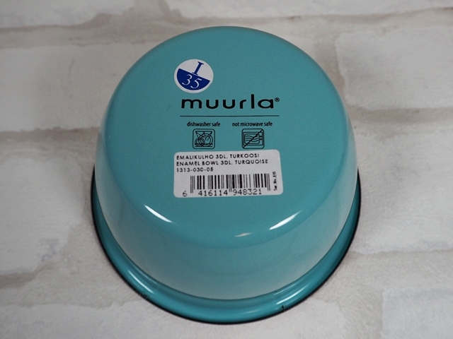 北欧フィンランドのmuurlaの琺瑯(ホーロー)ベーシックシリーズのボウル、ターコイズ Sサイズです。