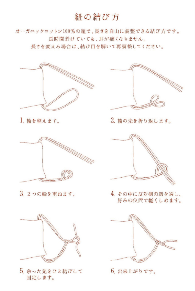 紐にもオーガニックコットンを使用し、簡単に長さを調節できます。